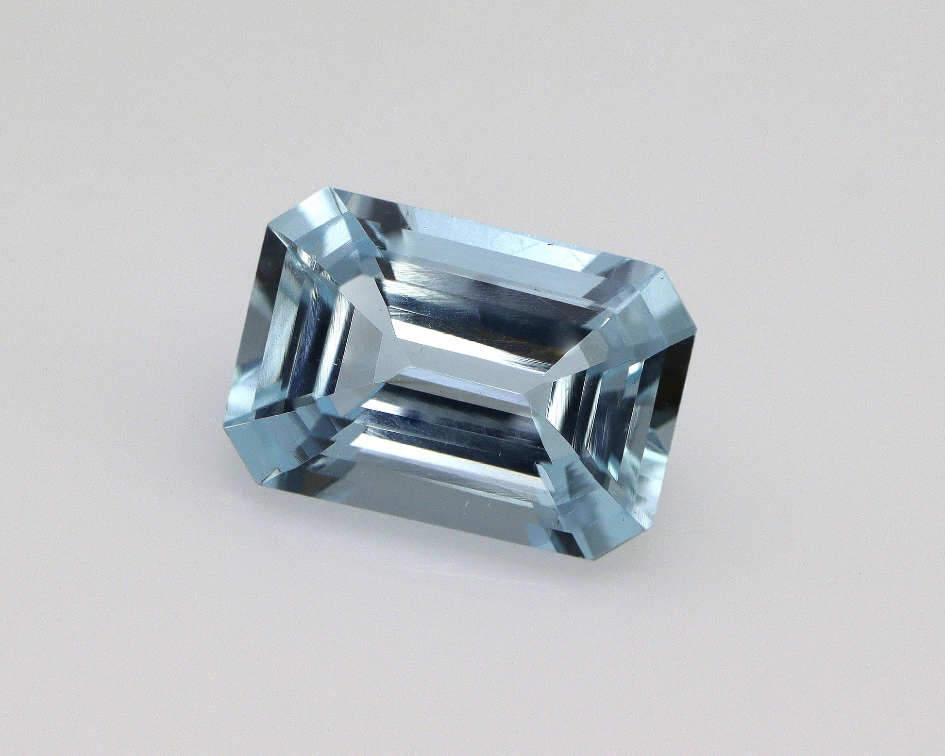 This stunning 2.2 Ct Natural Aquamarine Gemstone in a classic emerald/octagon cut (10 x 7 mm) displays a soft light blue color with excellent eye-clean clarity. With its elegant rectangular shape and fine faceting, it is perfect for creating a solitaire aquamarine engagement ring, pendant, or custom jewelry design.