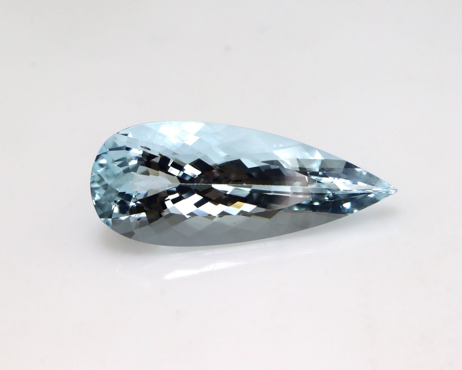This impressive elongated pear cut Aquamarine weighs 7.06 carats and measures 23 Ć 10 Ć 7 mm. With its light to medium blue tone, fine brilliance, and eye-clean clarity, this gemstone is of AAA+ quality, making it perfect for bold cocktail rings, solitaire pendants, or high-end fine jewelry.
